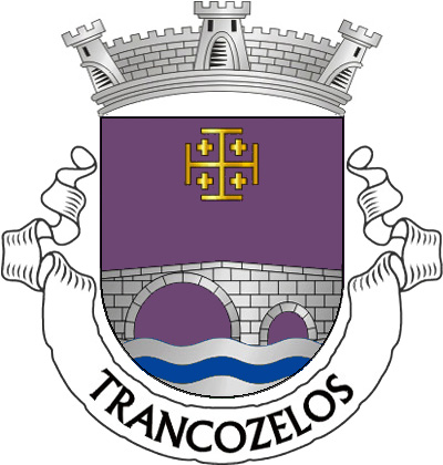Escudo de púrpura, ponte medieval de dois arcos, de prata, lavrada de negro, firmada nos flancos e movente de campanha diminuta ondada de prata e azul de três tiras; em chefe, cruz de Ordem do Santo Sepulcro, de ouro. Coroa mural de prata de três torres. Listel branco, com legenda negro: «TRANCOZELOS».
