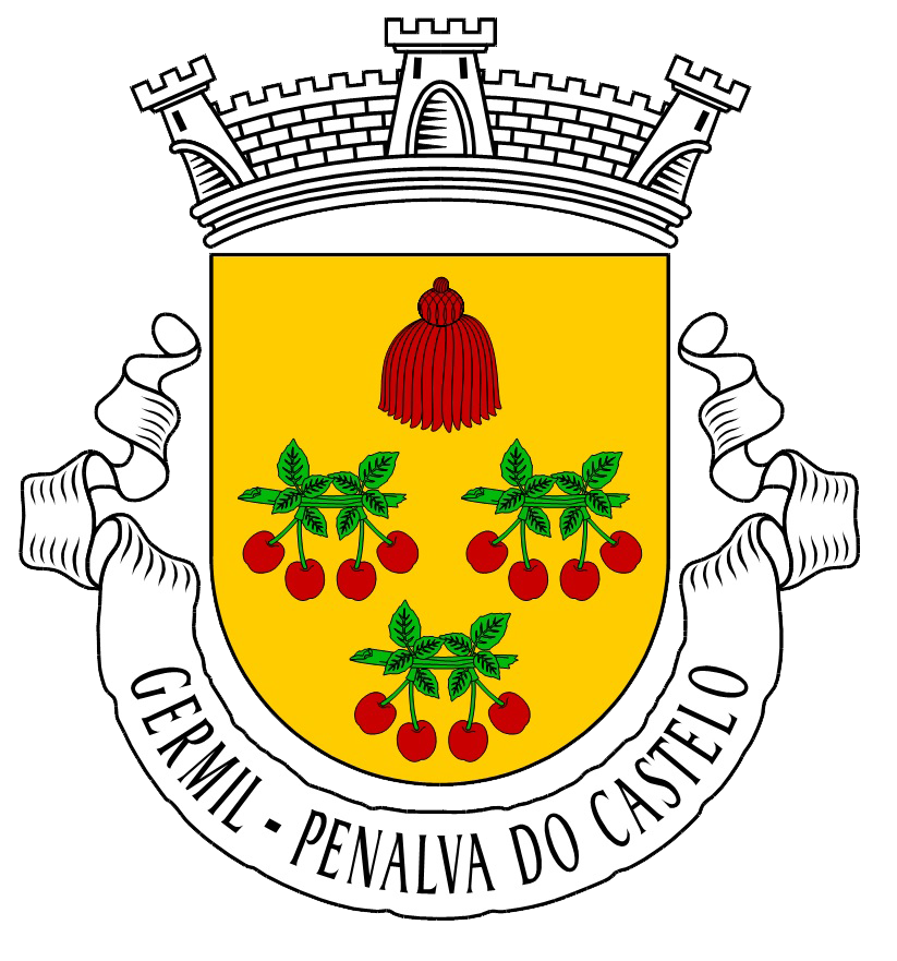 Escudo de ouro, três ramos de cerejeira de verde, frutados de quatro cerejas de vermelho; em chefe, um caladrius de vermelho realçado de negro. Coroa mural de prata de três torres. Listel branco, com a legenda a negro: «GERMIL – PENALVA DO CASTELO».
