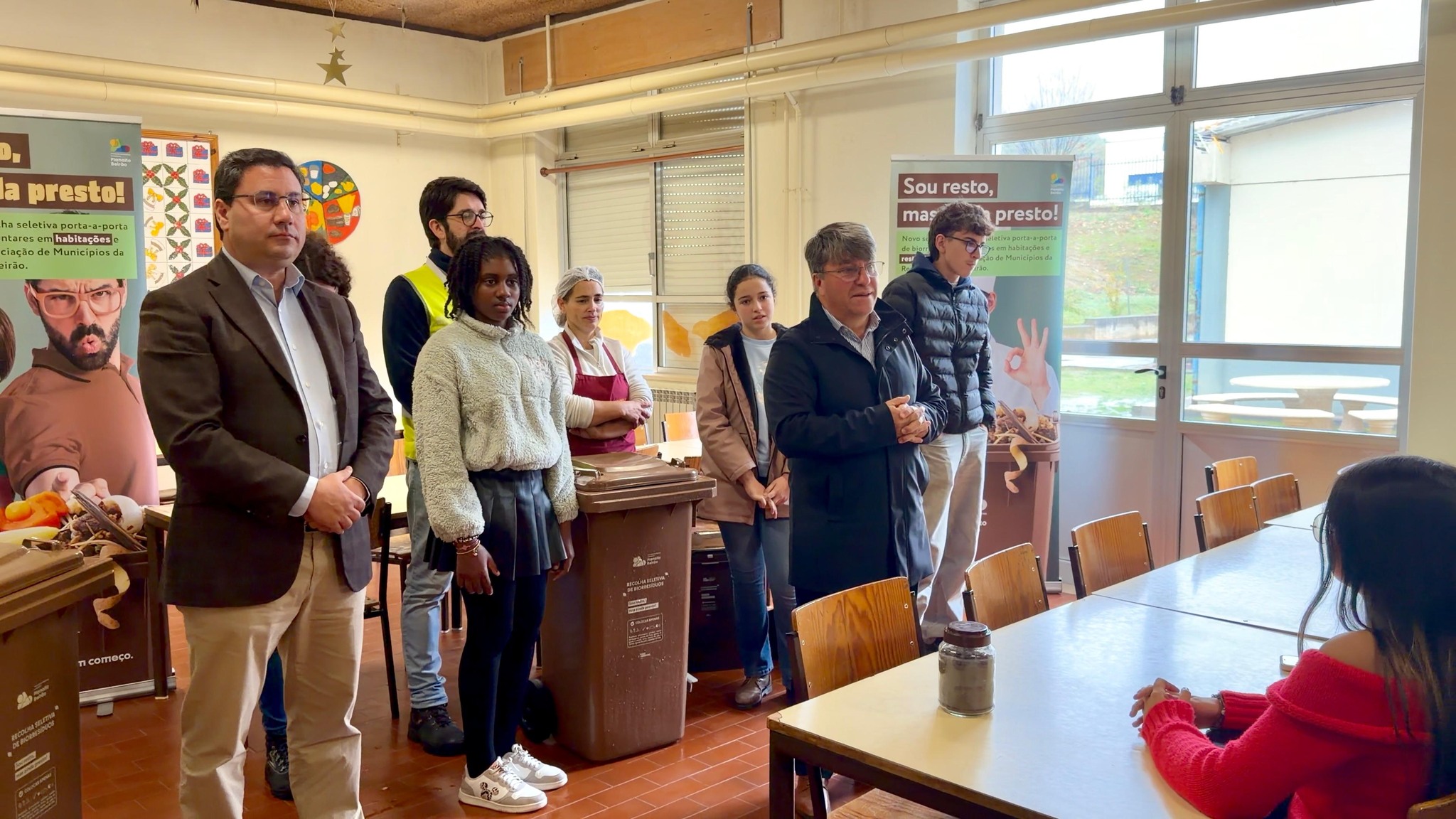 No final, foram entregues contentores à escola e, com a colaboração de alunos e funcionários, procederam à deposição dos primeiros biorresíduos produzidos no refeitório, assinalando simbolicamente o arranque desta iniciativa sustentável.
